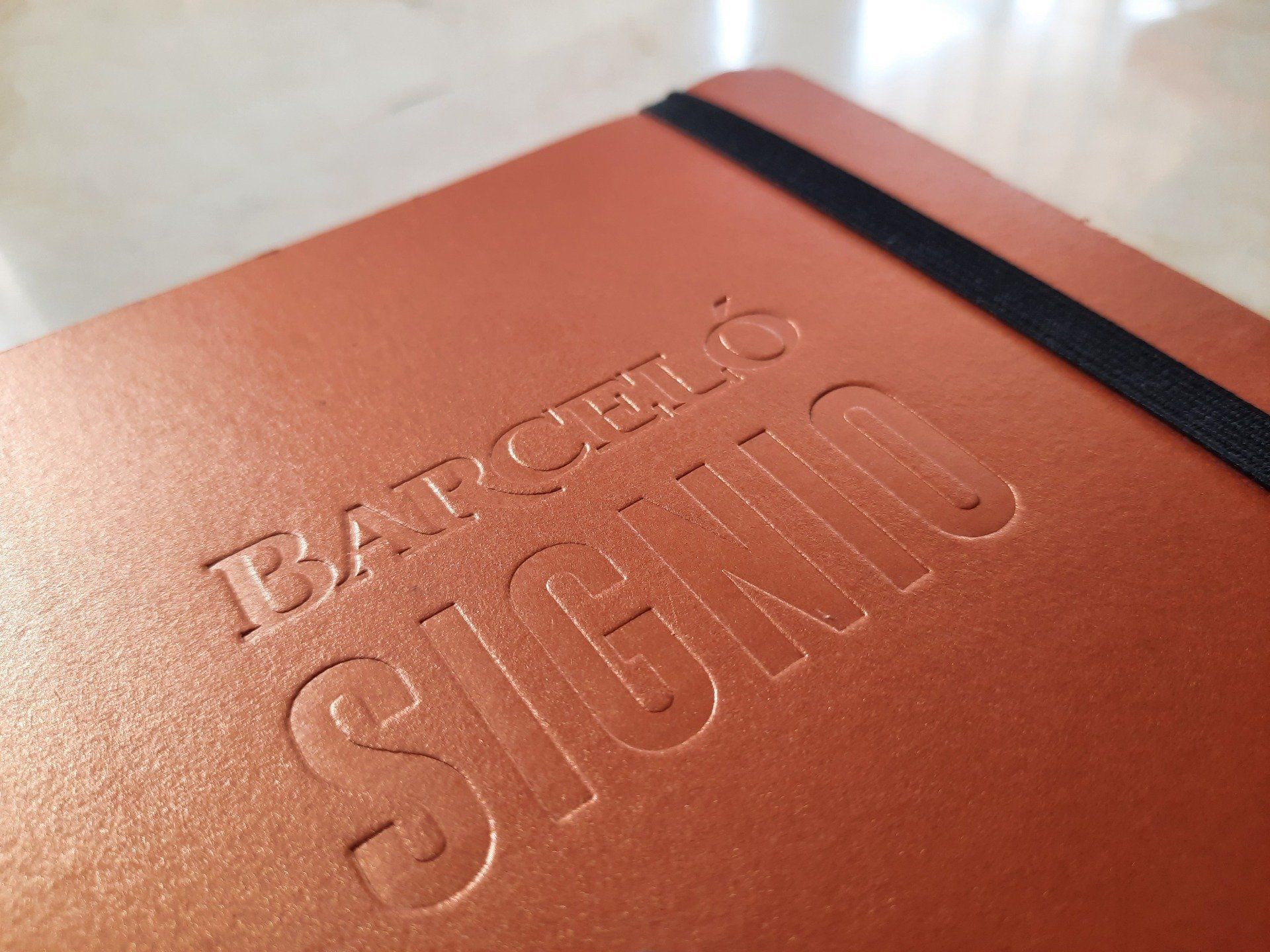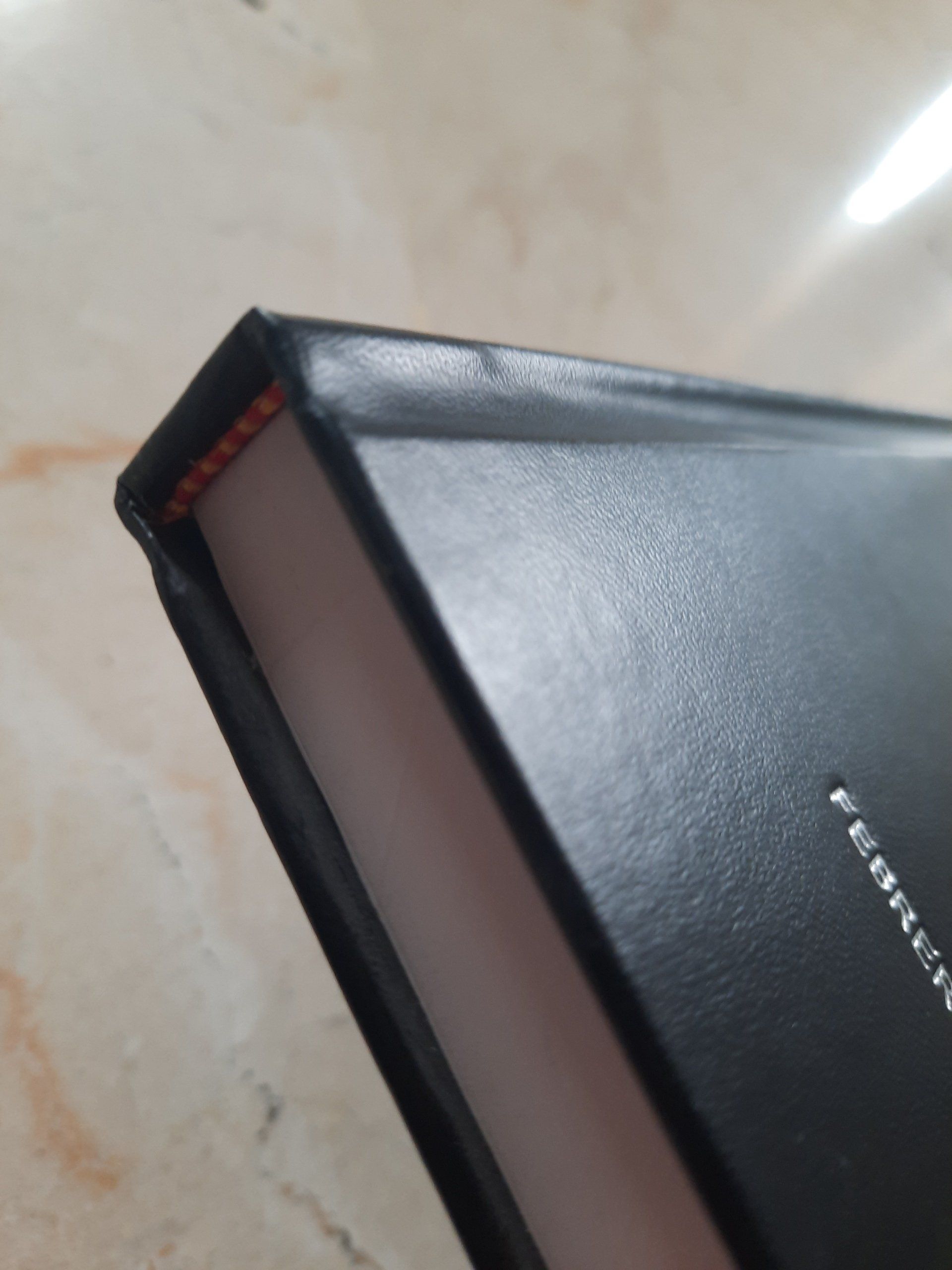 Encuadernación al más puro estilo artesanal, grabados en lomo y portada,